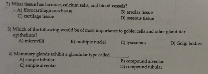 Solved: What Tissue Has Lacunae, Calcium Salts, And Blood | Chegg.com