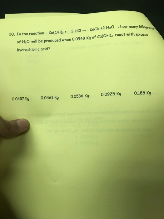 Solved: 2 HCl → CaCl2 +2 H2O : How Many Ki 20. In The Reac... | Chegg.com