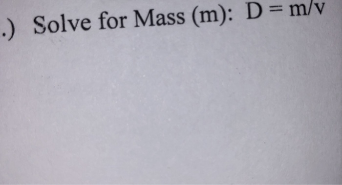 Solved: .) Solve For Mass (m): D = M/v | Chegg.com