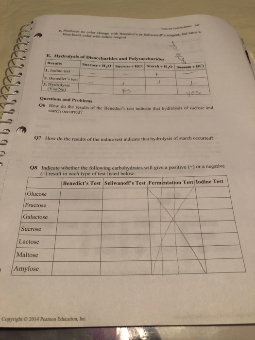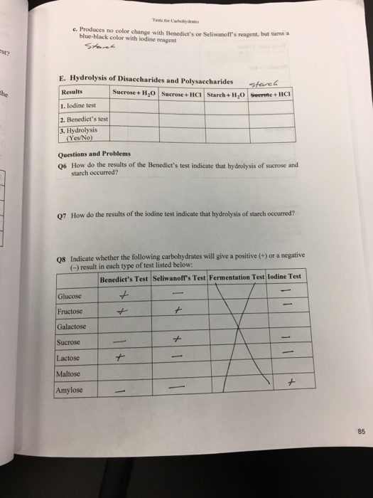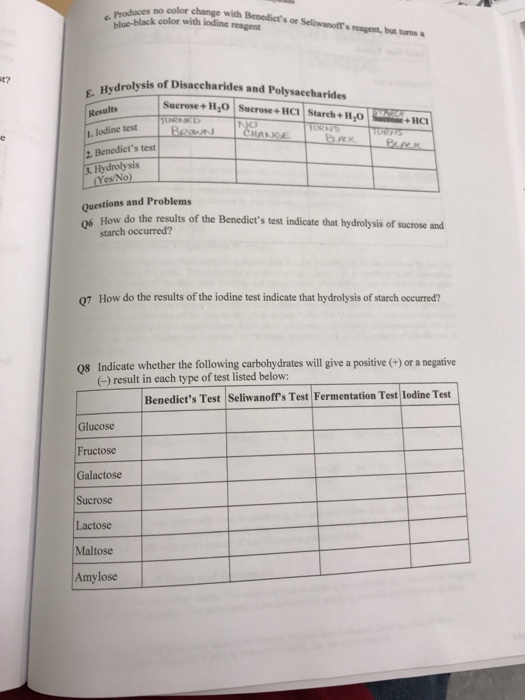 Solved: Tests For Cwrbolhydrates E. Produces No Color Chan... | Chegg.com