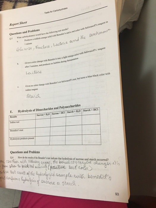 Solved: Produces No Color Change With Benedict's Or Seliwa... | Chegg.com